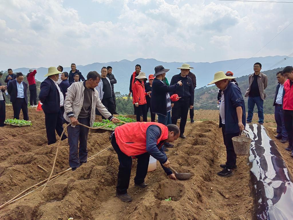 会议现场,烟叶站专业技术人员从整地、培土、移栽、施肥、撒药、盖膜等技术要点进行了全方位讲解,并就栽培技术、中耕管理、平衡施肥、病虫害防治进行了系统培训,11个村委会书记(主任)、驻村工作队进行了现场移栽实践。会上,烟叶站站长严明认真分析了烤烟生产形势,对烤烟预整地和移栽工作作了安排,进一步明确各村烤烟生产种植面积和产量计划,为进一步提升全镇烟叶生产规范化、集约化、专业化、商品化水平,奠定坚实基础。