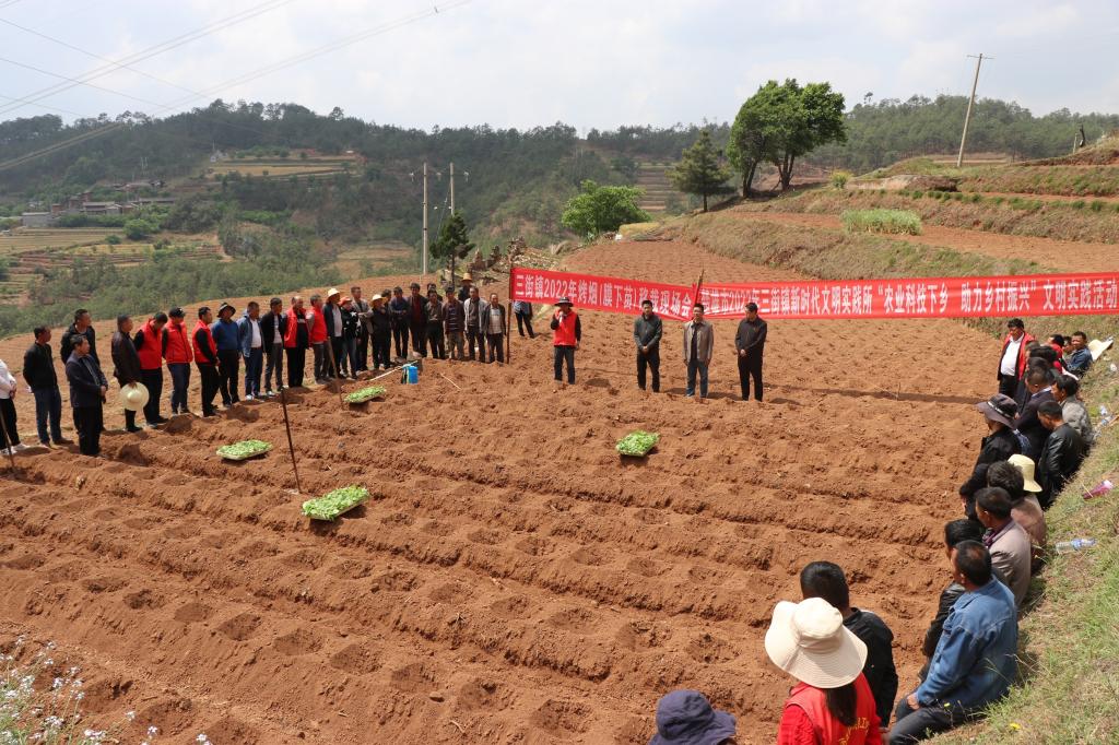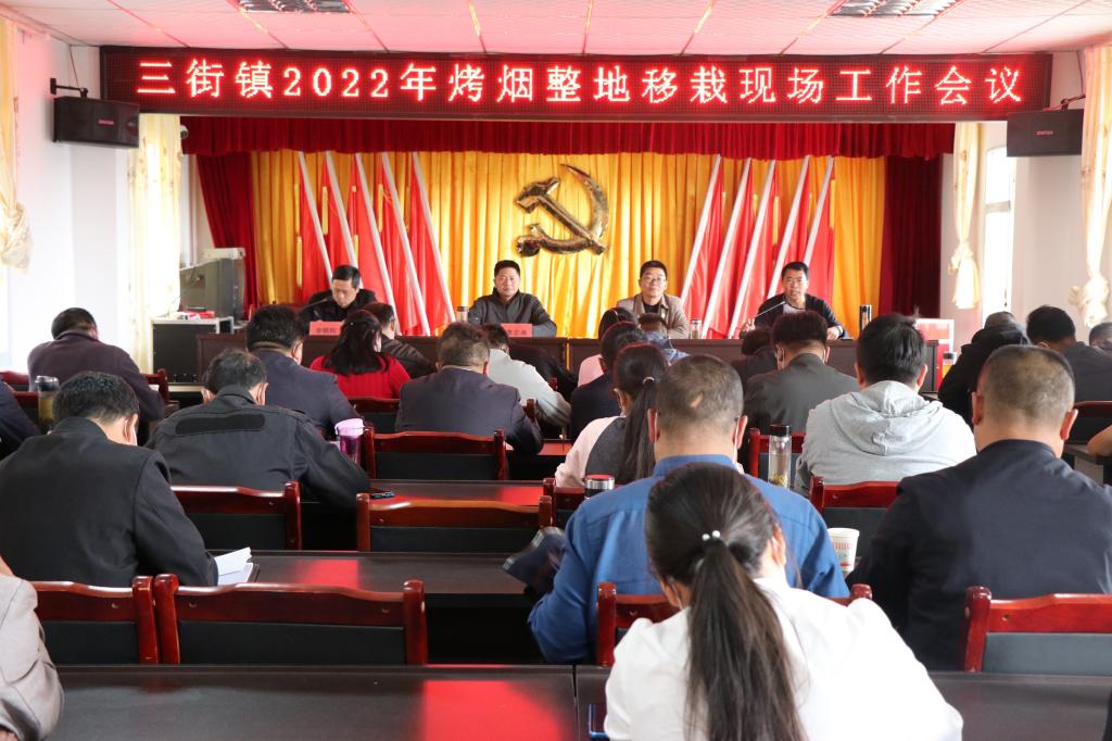 4月19日下午,三街镇召开2022年烤烟整地移栽现场工作会。镇党政班子成员、11个镇派工作组组长、11个村党总支书记(主任)、驻村工作队队长、三街烟叶站全体职工及烤烟辅导员参加了会议。现场会采取现场实地观摩学习与召开会议相结合的形式进行。