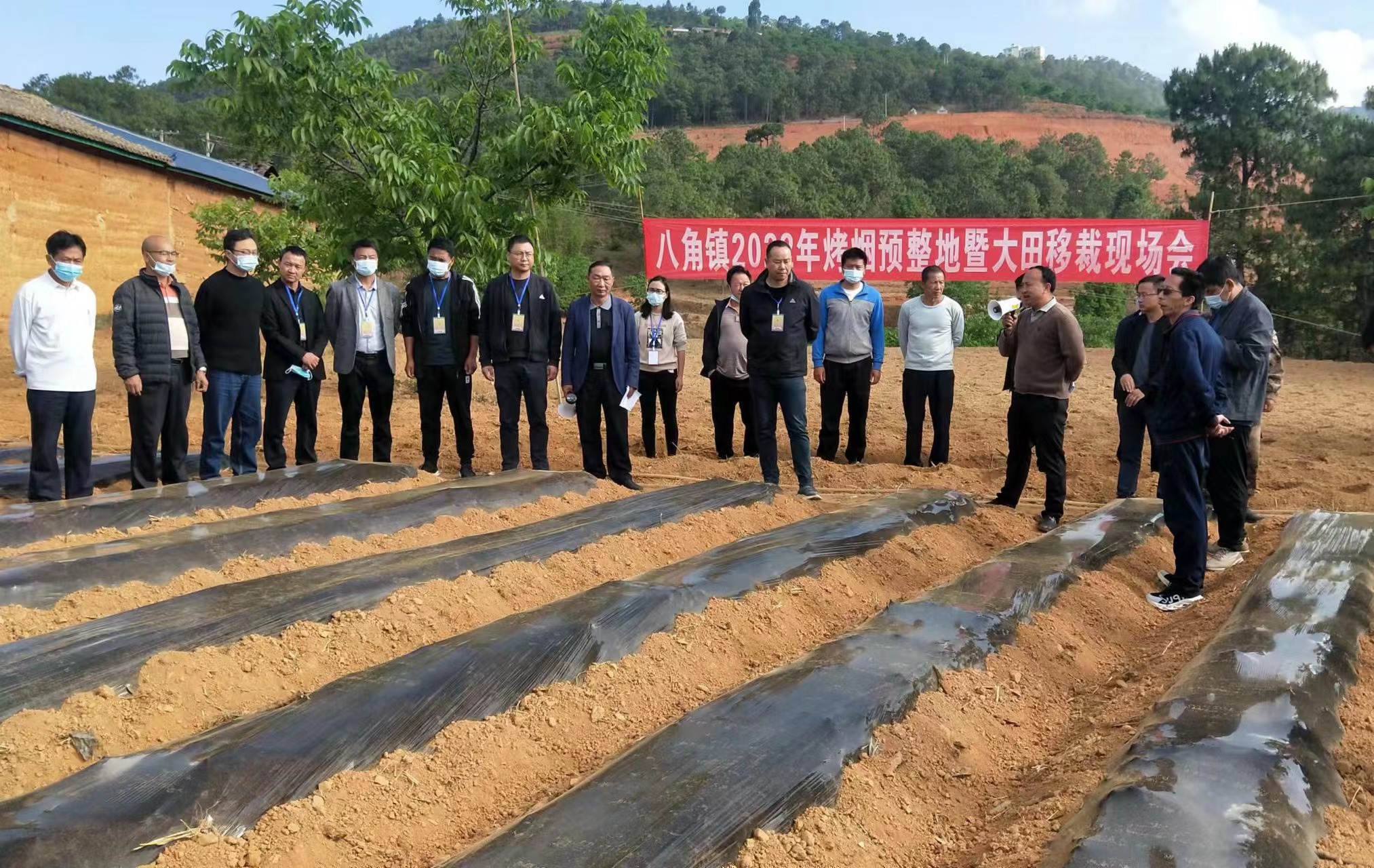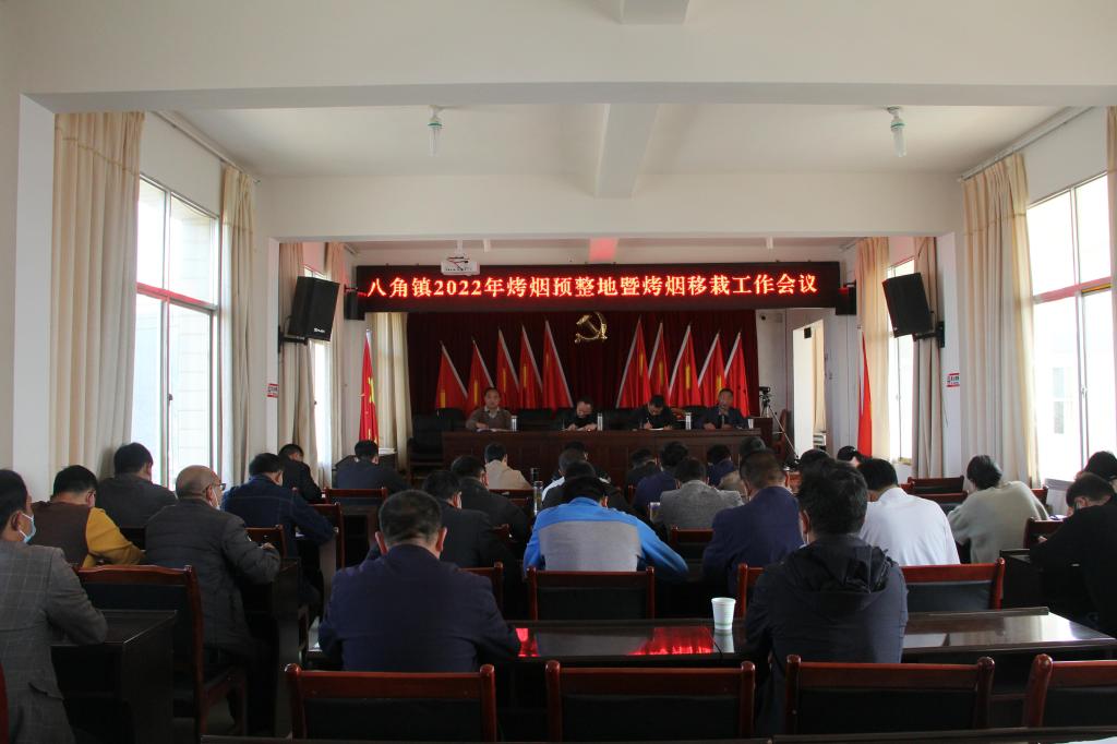 2022年4月20日,八角镇召开2022年烤烟预整地暨烤烟移栽现场会。
