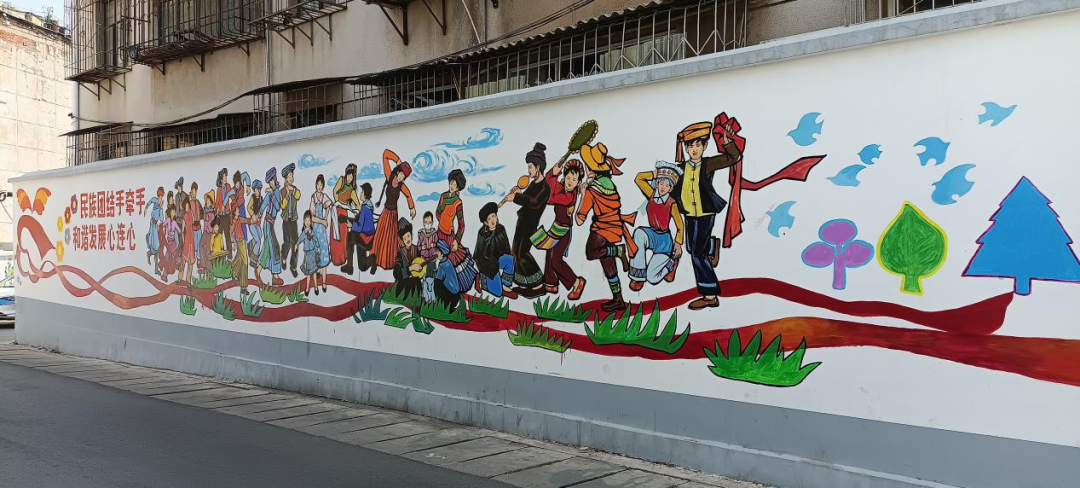 学桥街社区党总支书记周丽华说:“这些墙绘,展现各族人民坚定听党话、感党恩、跟党走,在中华民族大家庭中像石榴籽一样紧紧抱在一起的喜人景象。”