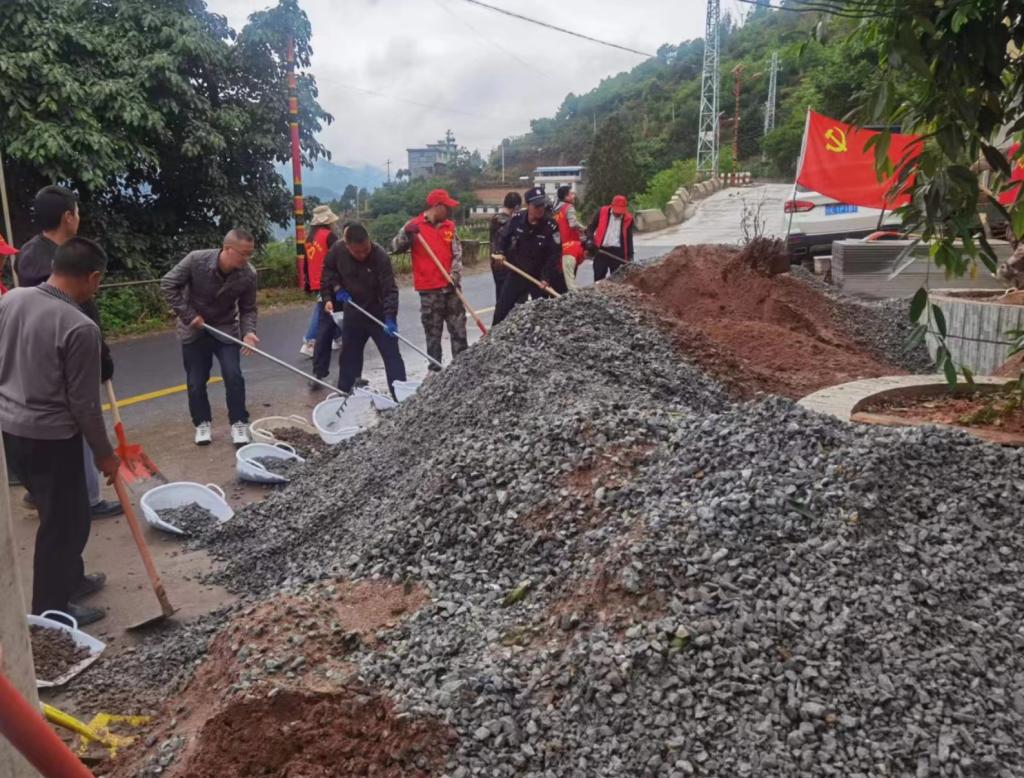党旗领航,奏响“环境齐整治”行动曲。坚持党员争当表率、争当示范,走在前列、积极作为,以群众工作组为单位深入辖区11个行政村全面开展美丽乡村示范村打造工作。党员干部率先垂范,撸起袖子,扛上锄头,清杂草、清理污水沟渠,就地取材打造独具特色的宜居村寨,党群携手共绘美丽乡村画卷。