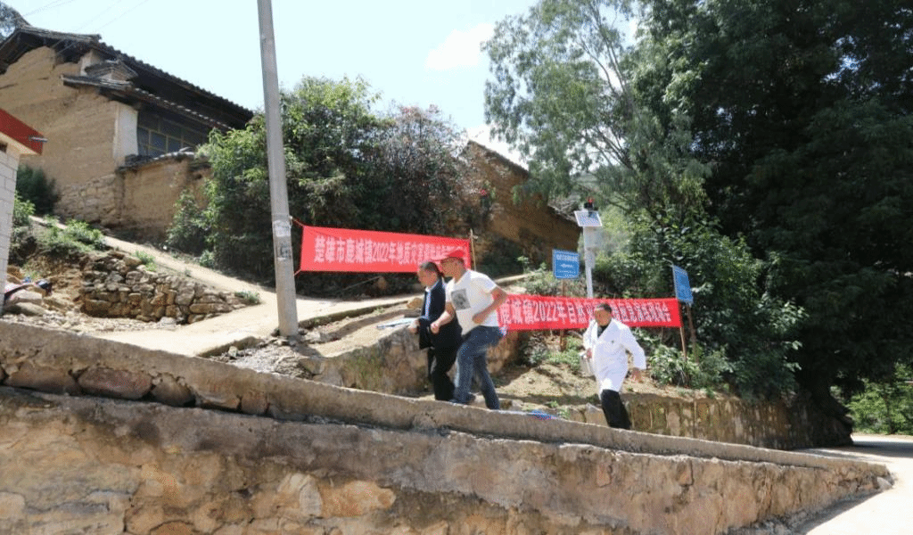 演练模拟鹿城镇新村村委会黑佐利小组因连日降雨,地质灾害隐患点监测员陈加正巡查时发现,地质灾害1号监测点桩距突然增大20厘米,还在继续增加,已威胁到6户农户的生命财产安全。监测员立即向指挥部报告,得到指令后,及时敲响锣发出避险预警信号。镇指挥部接到险情报告后迅速启动应急预案,并组织相关部门奔赴“受灾现场”采取救援行动的情景。现场成立了救援指挥部,下设综合协调组、地质调查组、抢险救援组、医疗救护组、后勤保障组、治安保卫组6个工作组,迅速展开现场救援行动。