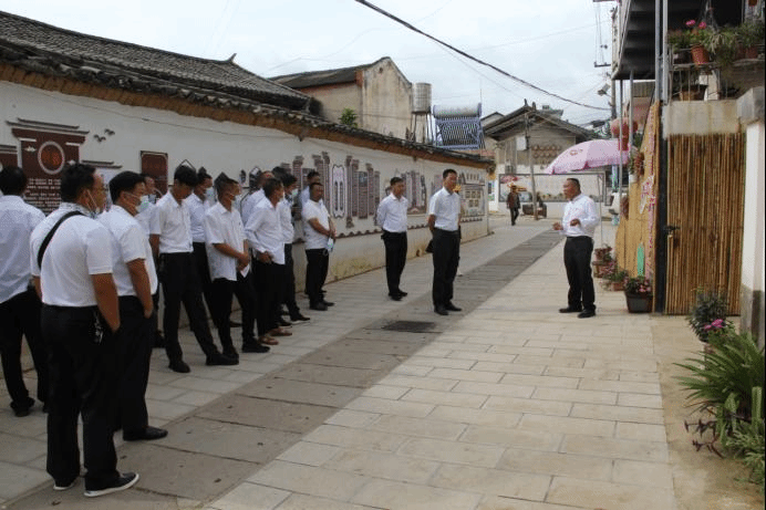 在国家级传统村落江坡大村,干净整洁的乡村环境、自然古朴的院落民居、积极向上的精神风貌,给考察组成员留下了深刻印象。通过听取介绍和实地观摩,考察人员详细了解了江坡大村因地制宜的工作思路和就地取材的经验做法,同时就自身工作中遇到的困难和问题与当地负责人进行了深入交流和探讨。