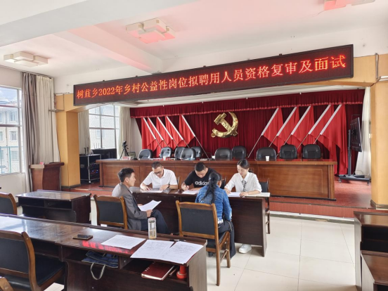 二是组织一场现场招聘会。组织乡村公益性岗位现场招聘会,由乡村振兴、就业等领域分管领导和社保中心工作人员组成现场招聘工作组,参与报名的群众通过资格复审、面试、公示等环节后,与树苴乡人民政府签订劳动协议,全乡共开发46名公益性岗位,其中乡村振兴办开发18人;社会保障和为民服务中心12人;林草服务中心16人。