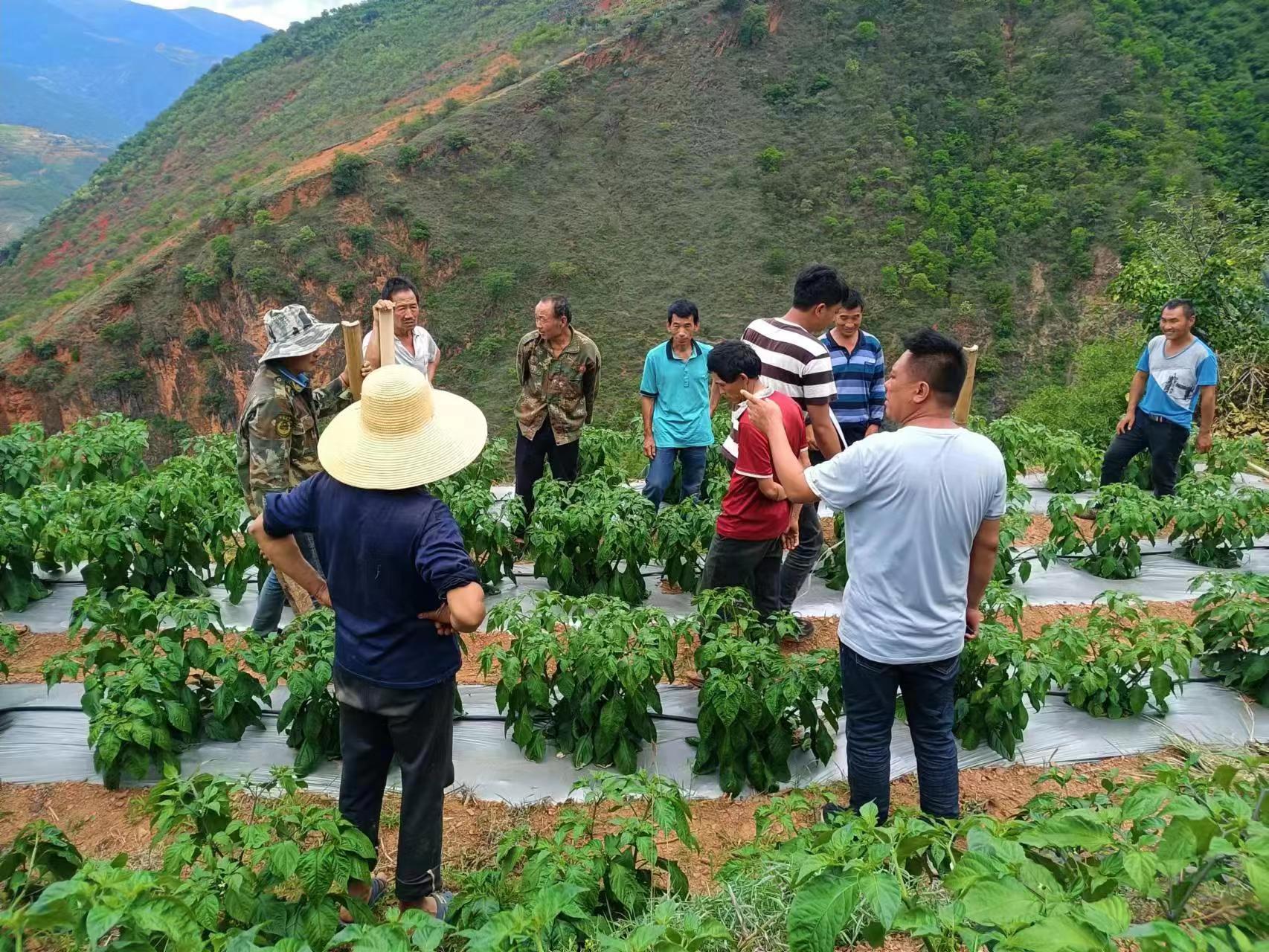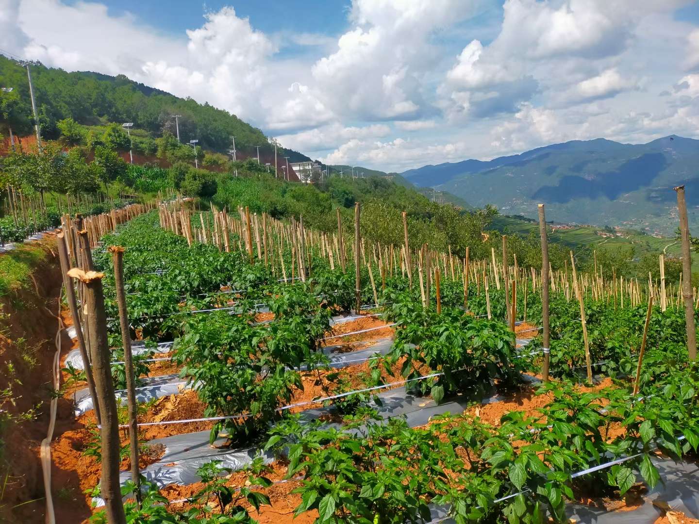 杨发明所在的普掌村委会,今年有64户农户种植了150亩工业辣椒,说起作为第一批试吃螃蟹的人,杨发明还是有些忐忑,“毕竟没有种过,以前都是种烤烟,又听人家说,摘辣子的时候眼睛都辣了睁不开,还说牛都辣得死,就真呢担心。后来他们公司的技术员来给我们讲解,听听才认得也不是那么回事,也就试着种种瞧了。前两天他们技术员来看了,我一棵辣子差不多能收两公斤辣子,一亩我差不多种了650棵左右,那亩产就在一吨二三左右,一公斤辣子保底收5块,那我今年的收入是非常可以。”杨发明给记者算起了今年的收入账,不由得喜滋滋的。
