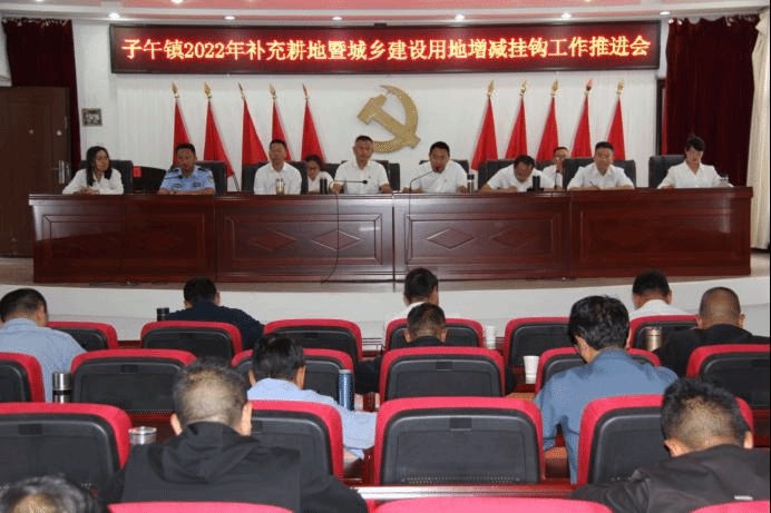 9月6日上午, 子午镇召开2022年补充耕地暨城乡建设用地增减挂钩工作推进会。镇党政班子成员,各办公室、中心、站所负责人,镇派各村工作队队长,上划站所负责人,子午自然资源所全体人员,各村党总支书记、副书记、村委会副主任、土地信息员共90余人参加会议。