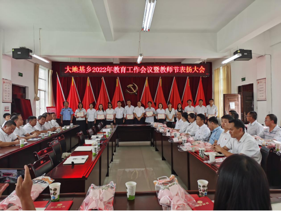 在第38个教师节来临之际,大地基乡召开教育工作会议暨2022年教师节表彰大会。乡党政班子成员,乡属各办(中心、所)负责人、上划站所负责人,各村党总支书记、村委会主任,乡初级中学、乡中心完小领导班子和受表彰教师参加会议。