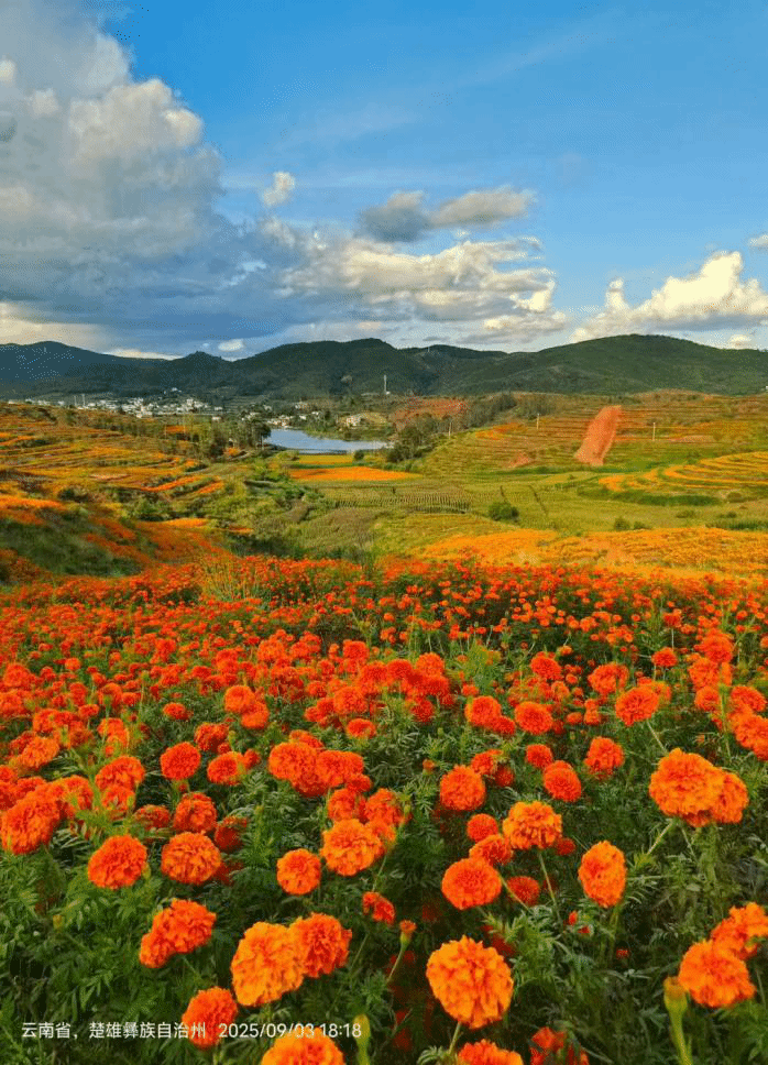 金秋时节,走进楚雄市苍岭镇黄草村委会的千亩万寿菊种植基地,金灿灿的花朵漫山遍野竞相绽放,不仅构成了一道亮丽的风景线,更成为当地群众增收致富的“黄金产业”。