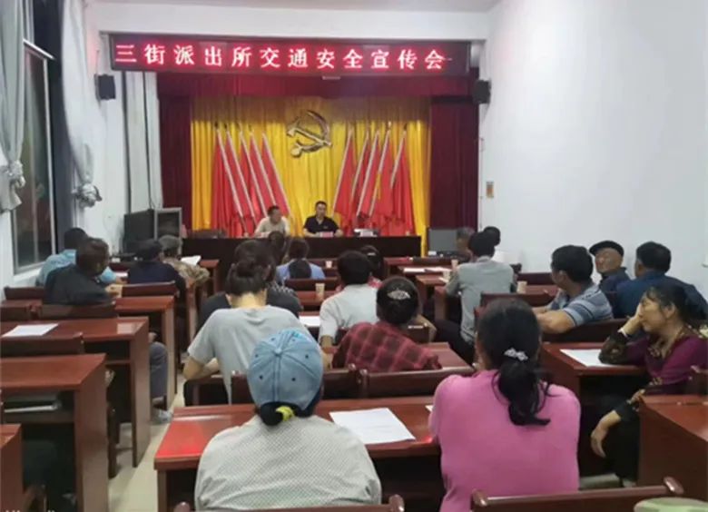 聚焦协同联动,强化劝导服务。以组织民警、辅警深入各单位发放交通安全宣传材料、观看交通安全警示教育片等方式,结合发生在农村地区的典型交通事故案例,开展宣讲活动。在辖区11个村委会成立交通安全劝导工作小组,并指导村组把交通安全宣传教育列入村规民约,由各村委会书记、主任以及治保调解员担任劝导员。