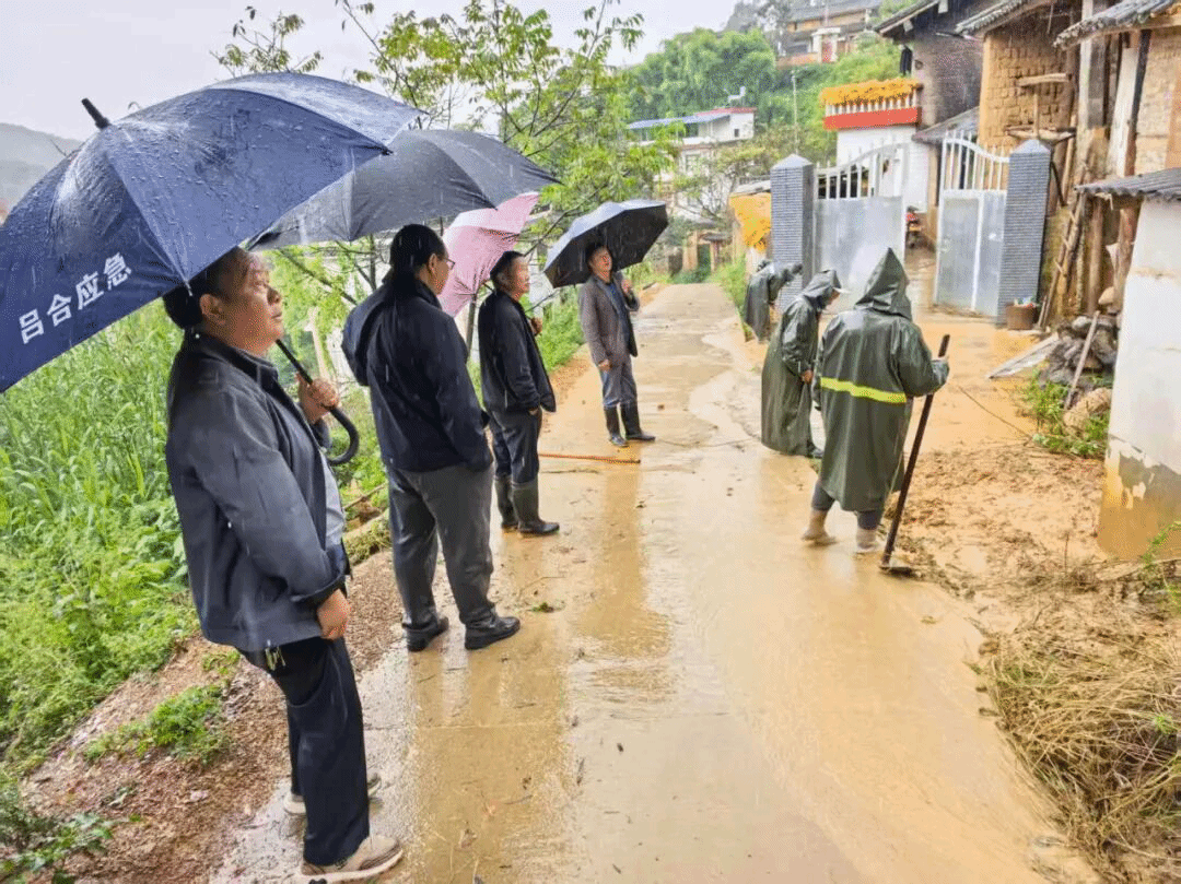 ——党员干部冲锋在前,发挥模范带头作用。在强降雨期间,吕合镇党员干部深入到各个村组,挨家挨户提醒村民注意防范强降雨可能带来的危害,尤其是对居住在低洼地带和地质灾害隐患点附近的村民,耐心劝导他们转移到安全地带,共转移安置39户131人。镇农业农村发展服务中心配合各村委会采取积极的保护措施,组织人员对农田的排水系统进行疏通,防止积水对农作物造成损害;对道路、桥梁等基础设施进行巡查,及时修复被雨水冲毁的部分,确保交通畅通。