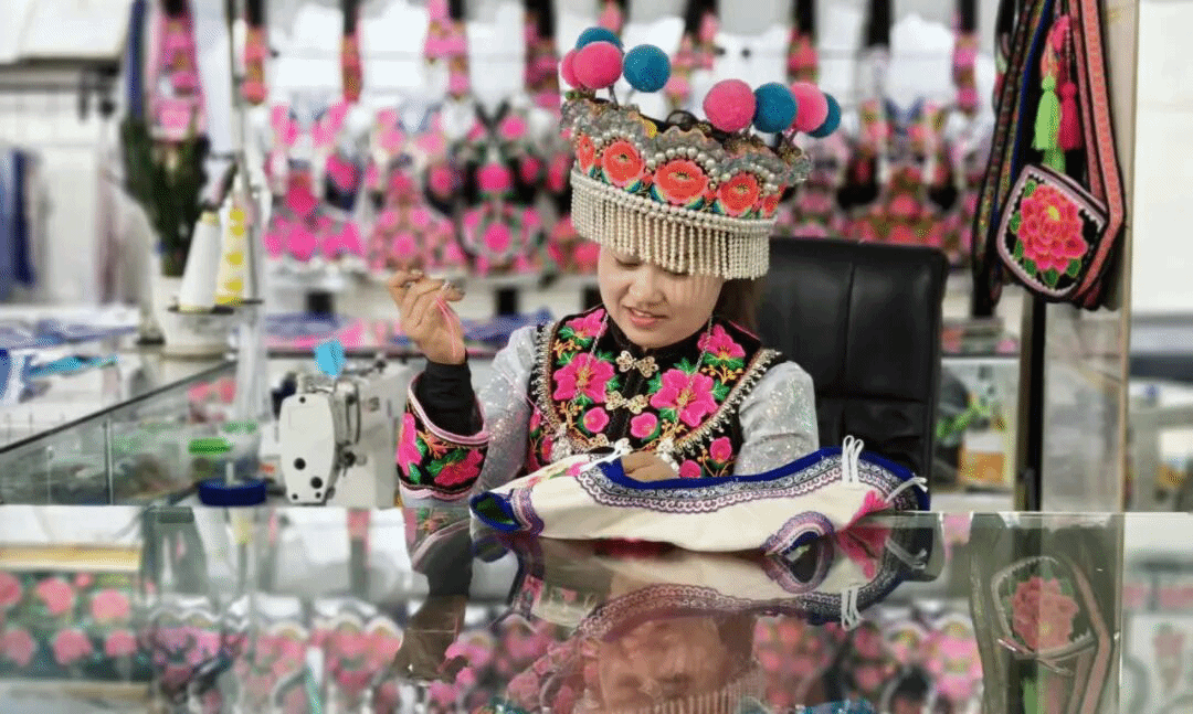 ——产业升级提效能,激活非遗“时代活力”。坚持守正创新,推动彝绣产业从“手工作坊”向“品牌化、规模化、数字化”转型。一是活态传承续文脉。深入挖掘彝绣文化内涵与技艺精髓,培育彝绣非遗传承人4名,创新建立“传承人+绣娘”传习模式,将传习点设在绣坊、农户家中,通过“拉家常式”交流、“手把手”示范,把彝族传统纹样设计、平针绣等核心技法倾囊相授,累计开展传习活动28场,覆盖绣娘300余人次,实现“技艺传习”与“文化传承”双同步。二是创新赋能拓品类。组建“党员骨干+非遗传承人+专业设计师”三方联动创新团队,深挖彝族马缨花的吉祥寓意、虎纹的图腾崇拜等文化内涵,将传统纹样与现代生活场景深度融合,创新开发服饰穿搭、家居装饰、文创礼品、办公文具等20余个系列、150余种产品,覆盖日常消费、节庆礼品、旅游纪念等多元需求。引入全自动高速电脑绣花机一台,建立包含20余套原创纹样的数字版权库,产品设计周期缩短50%,单日产量可达手工绣娘的30—50倍,实现绣品在针法、配色、比例上高度统一,核心产品市场认可度显著提升。三是多元发力拓市场。构建“线上+线下”营销体系,培育由本地绣娘、返乡青年组成的10人本土直播团队,以“绣娘讲故事+产品实景展示”的形式,在抖音、快手等平台通过直播讲解纹样寓意、展示刺绣过程、发起“定制化”互动,拉近与消费者距离;线下依托3家彝绣车间,建立“车间+绣坊+绣娘”的产销模式,多措并举助力彝绣“破圈”。截至目前,线上累计销售产品4000余件,销售额达200万元,线下营收达300万元,利润率高达65%。