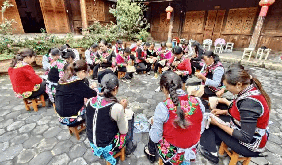 ——“指尖经纬”织就共富图。以时光中传承五百年的火草麻布纺织技艺为起点,三街镇的彝绣在代代相传中,将长辈的祝愿与自然的灵性一同织进经纬。如今,这项古老技艺正沿着“文化+产业”的融合路径,走出大山、绽放光彩。通过采用“师徒传承+外出取经”的培育模式,老艺人恪守技艺根脉,年轻骨干则将现代美学融入传统绣法,让火草麻布的质朴与彝绣的灵动交相辉映。在“党支部+协会+企业+绣娘”的发展机制下,“云端带货+实体展销”双轨并行,推动产品从传统服饰拓展至家居、文创等多元领域。截至目前,全镇累计培训彝绣人员3000余人次,带动1200余名绣娘在家门口稳定就业,助力175户脱贫户持续增收。2024年,彝绣产值突破400万元,“指尖技艺”真正转化为有温度、有活力的“指尖经济”。