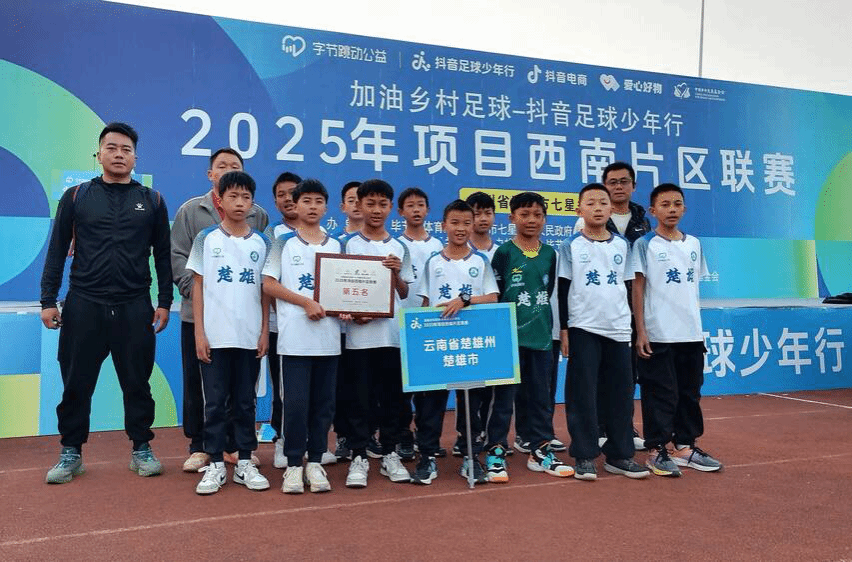 225年11月28日至2025年12月2日,“加油乡村足球—抖音足球少年行”西南片区联赛在贵州省毕节市圆满落幕。楚雄市八角镇中心小学代表队的12名足球小将奋勇拼搏,在U12男子组比赛中勇于突破,为八角教育添上了浓墨重彩的一笔。