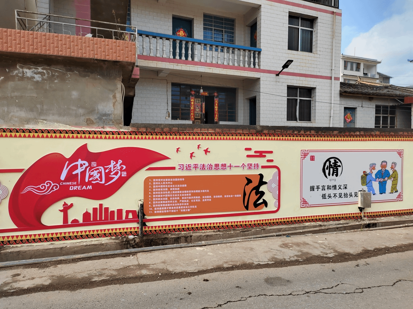 以文化阵地为载体,浸润群众法治心田。干田村依托汉彝文化交融的特色底蕴,深挖民族文化与法治精神的契合点,打造法治服务阵地,设立矛盾纠纷调解室、综治中心,为群众提供法律咨询、纠纷调处等精准服务,切实提升村民依法办事、依法维权、遵纪守法的意识和能力。村内法治文化长廊尤为亮眼,生动鲜活的法治彩绘让墙面“活”起来、法律“讲”出来,既吸引村民主动驻足学习,更构建起“出门见法、抬头见法、低头学法”的沉浸式普法环境,让群众在耳濡目染中接受法治熏陶,在潜移默化中提升法治素养。法治元素与乡村风光、民俗风情相映成趣,既提升了村庄“颜值”,更厚植了法治底蕴,托起了百姓稳稳的幸福。
