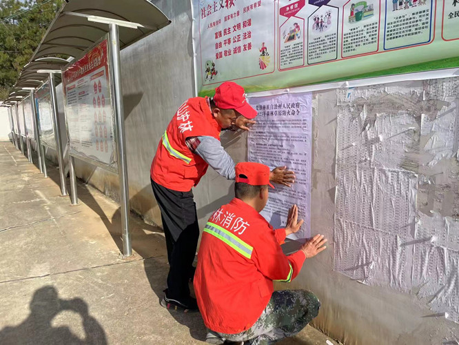 ——筑牢“宣传网”强氛围。坚持把宣传教育作为森林防火工作的第一道防线,采取“点、线、面”相结合,抓实森林防火责任书入户、学校“五个一”、警示标牌、五彩旗等举措,充分利用户长会、标语、宣传画、微信、小喇叭播放等载体广泛宣传防火知识,召开户长会182场次,向群众发放公开信6000份,发放高火险期防火通告850份,发放防火管理办法8000份,向中小学生发放宣传手册1100份,50只小喇叭每天播放防火宣传音频4小时,在微信群推送森林草原防火警示片,粘贴悬挂森林防火宣传标语、标牌1200条,利用街天宣传活动发放各种宣传资料5000份,形成横向到边、纵向到底、不留死角的全方位宣传格局。