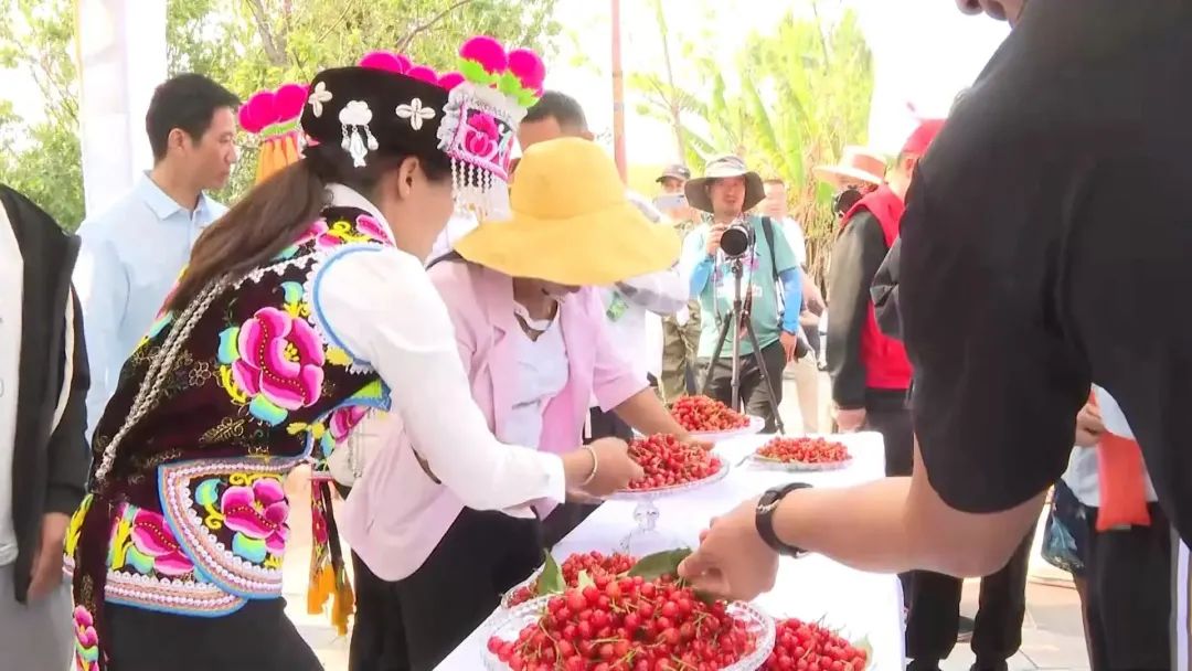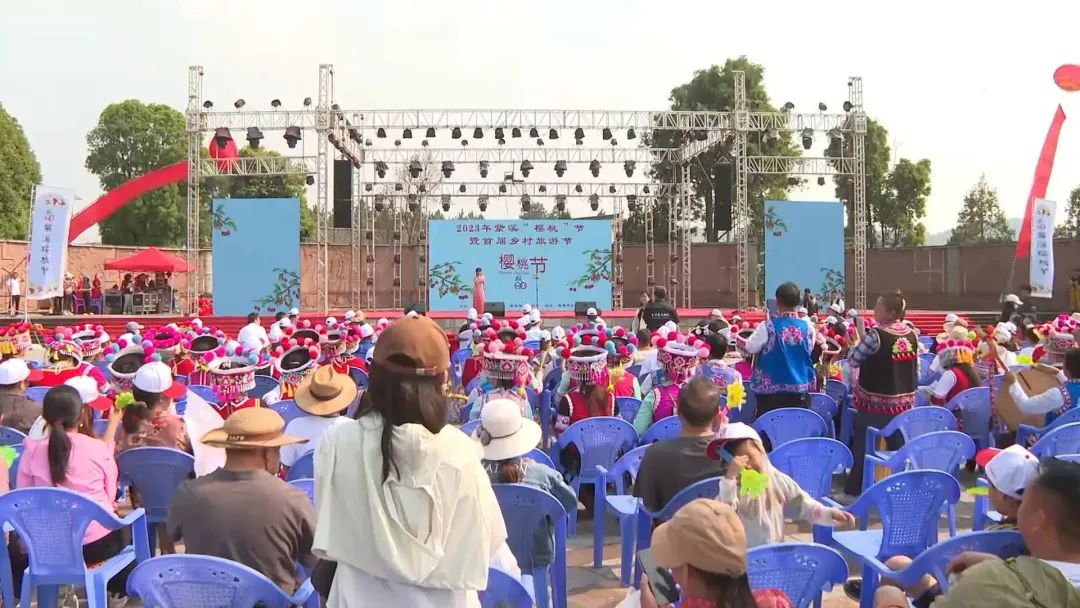 4月22日上午,紫溪镇紫溪彝村火把广场人声鼎沸、热闹非凡,以“绿美紫溪·樱你而来”为主题的2023年紫溪樱桃节暨首届乡村旅游节开幕式在这里举行。伴随着精彩的文艺演出,村民、游客们聚在一起,一边庆祝丰收的喜悦,一边品尝美味的樱桃。