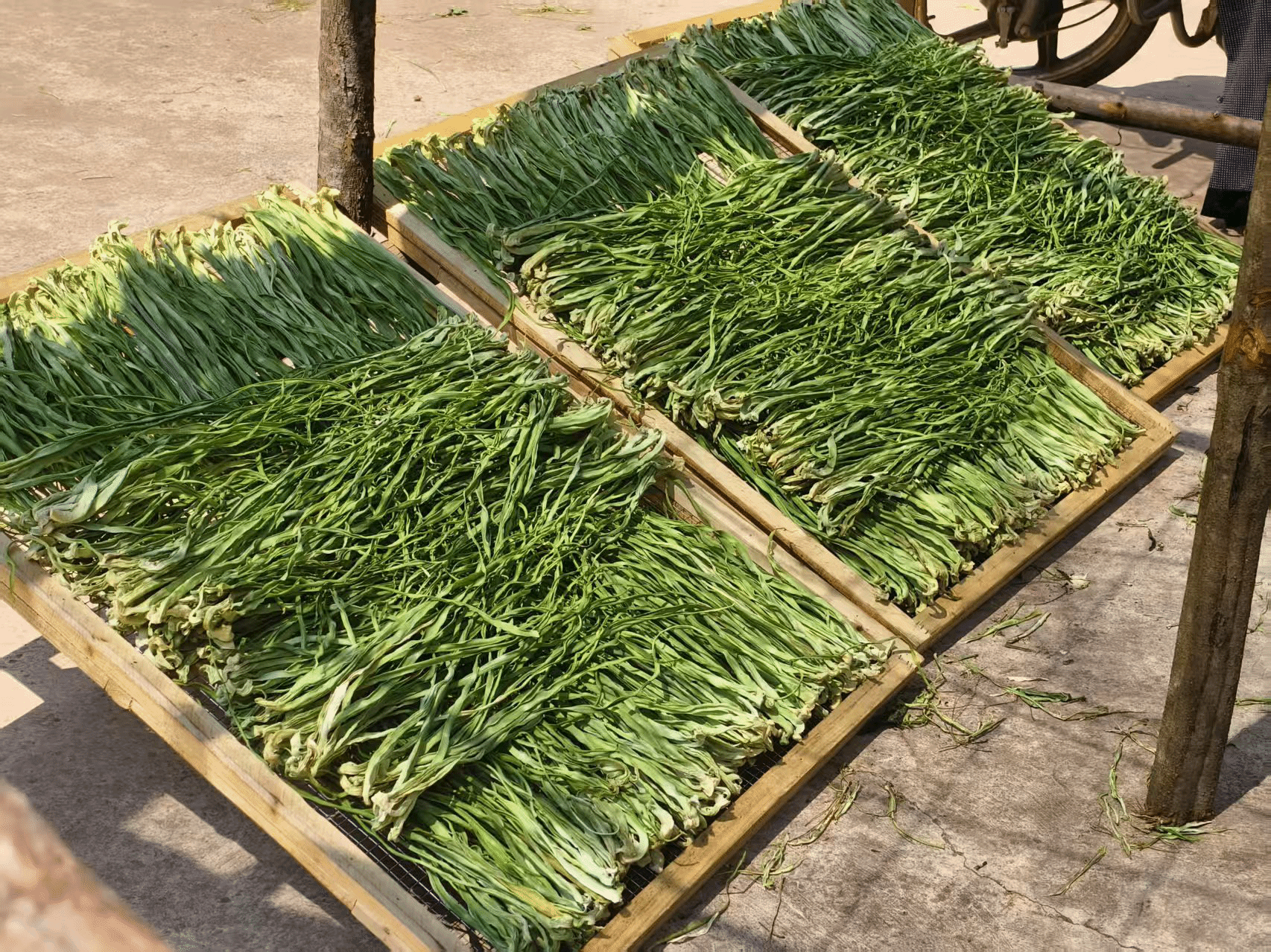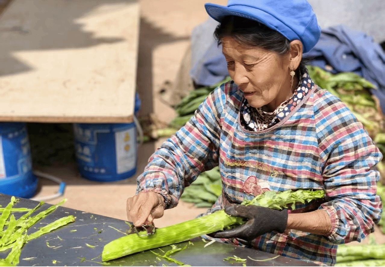 ——企业收购作后盾,稳定销路打消群众顾虑。庭院作坊加工出来的贡菜干品,如何顺利变现?大过口乡用稳定的企业收购给出了答案。得益于当地贡菜品质优良、口感脆嫩,深受外地市场青睐,吸引了多地收购企业常年驻乡收购。这些企业大多在乡设立固定收购点,安排专人负责收购工作,实行“现场称重、当场结算”,并灵活采取上门收购、定点收购相结合的方式,极大方便了零散加工农户。也有部分农户自行将晒干的贡菜成品拉往楚雄、南华等地售卖。稳定的收购渠道,让农户足不出村就能把产品变现,彻底打消了“加工出来卖不掉”的顾虑,为庭院作坊的持续运转提供了坚实保障。