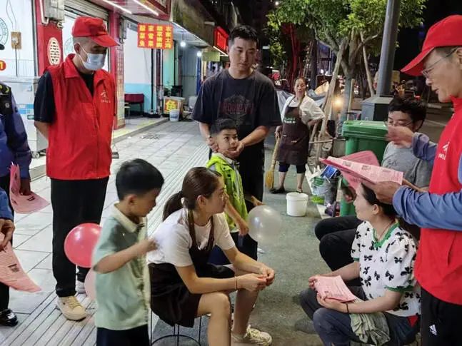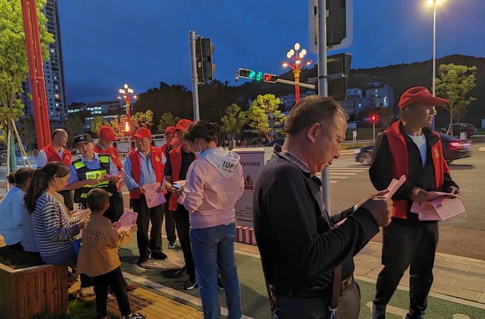 ——红色身影,传递关爱。辖区内龙江、学桥街、中大街等11个社区,积极组织志愿者、辖区民警、城管等组成夜巡队伍,认真巡查辖区范围内是否存在影响和谐稳定的因素并及时整治。志愿者们统一穿着红马甲,向辖区群众宣传安全知识,倡导居民平日要养成随手锁门、关窗、关电源、用完充电器及时拔除的好习惯,也要注意防火、防盗安全,增强居家安全防范意识。