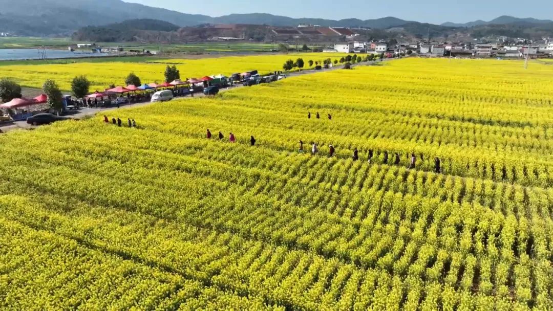 一大早,人们从四面八方涌来,或驾车、或步行,共同赴这场春天的约定。一望无际的油菜花海在微风的吹拂下泛起层层金色的波浪,仿佛是大自然精心准备的舞台背景。