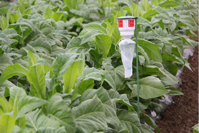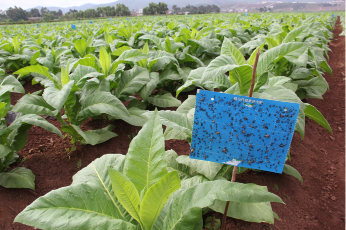 ----绿色防控,确保烟叶品质。加强田间卫生管理,积极组织开展田间净化清理工作,做到烟田无随意丢弃的废弃烟叶、地膜、农药瓶、农药包装等废弃物,减轻农业面源污染;大力推广粘虫板、杀虫灯、低毒生物农药,指导农户注意农药使用的时间、种类和浓度,已完成蓝板诱杀烟蚜虫、烟蓟马防治2.22万亩,斜纹夜蛾、烟青虫成虫防治2.22万亩;并在子午镇中干渠1万亩优质烟叶生产基地安装杀虫灯166盏,田间太阳能路灯78盏;组织无人机喷洒农药1次5600亩,有效减轻烟田蚜虫、烟青虫、斜纹夜蛾等虫害的发生,进一步提升烟叶安全,助力绿色防控,保护生态环境。