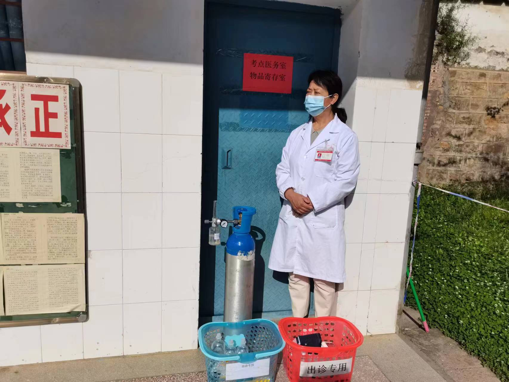 ——“医心”守护,撑起“健康伞”。考试期间卫生院在学校设立医务应急室,配备专业的医护人员和急救设备,随时准备应对可能出现的突发状况,为考生提供及时有效的医疗服务,指导学校做好卫生防疫、传染性疾病防控工作,确保考生的身体健康。