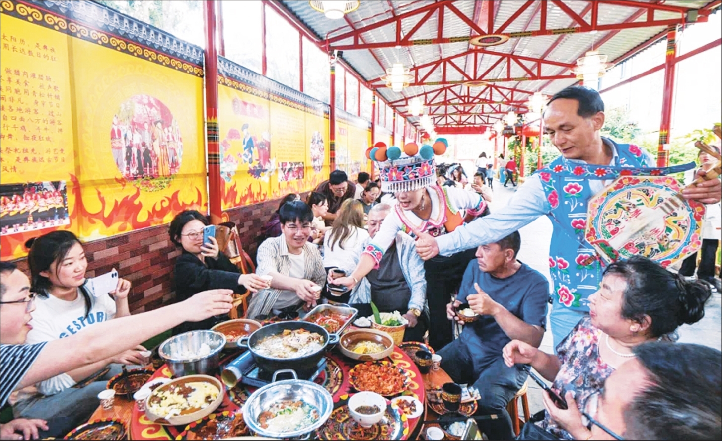 在紫溪社区党总支带领下,紫溪彝村成立了紫溪镇乡村旅游联合党支部,支部党员杨应成、李和友、李世琼等率先带头,积极开办农家乐,带动紫溪彝村片区乡村旅游农家乐加快发展。目前,紫溪彝村片区共发展农家乐38户、小吃店8户、客栈8家,松毛长街宴特色餐饮1家,药膳主题餐馆2户、中高端主题民宿1户,乡村旅游产品供给更加多样,乡村旅游联农带农作用持续增强。