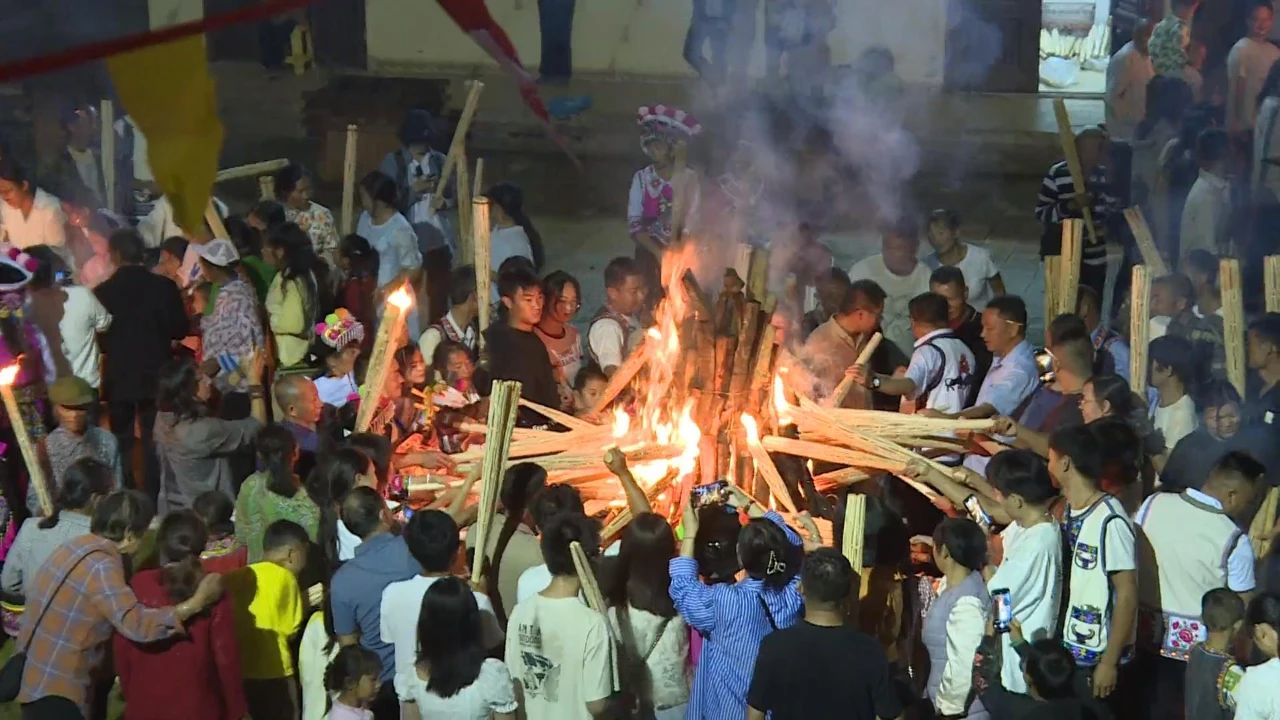 夜幕降临时,在彝家毕摩的诵经祝福声后,参加篝火晚会的彝家儿女与游客一同,手持长长的祈福火把,共同点燃了广场正中的主火把,熊熊火焰映红了整个夜空,欢声笑语流淌在每个角落。随着火把越烧越旺,热情好客的彝族群众围着大火把欢快起舞,用篝火晚会为亲人、朋友,送上深深的祝福。