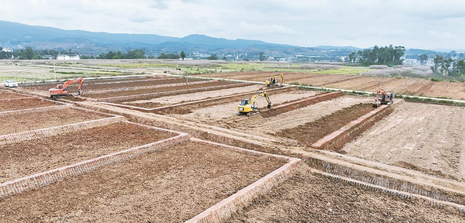 近日,笔者走进楚雄市苍岭镇智明村委会高标准农田项目建设现场,工人们铆足干劲抢工期,挖掘机、推土机、翻斗车等大型机械轮番作业,平整田地、修建沟渠,现场一派热火朝天的景象。