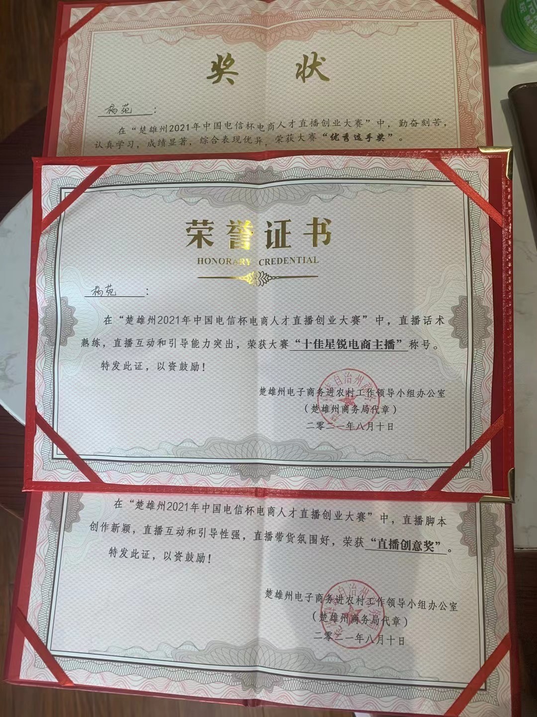 大过口乡着力从人才培育上下功夫,推动互联网创新成果与乡村振兴深度融合,为农村电商发展奠定坚实基础,将电商人才培训纳入全乡人才培养计划,积极组织团委、妇联、专业合作社、商户等不同群体参加州电商直播创业培训。7月28日-8月10日,大过口乡陆续输出9名电商人才参加楚雄州商务局、楚雄市商务局主办的电商直播培训,经过专业学习,大过口乡“小火把战队”在楚雄市电商直播创业大赛取得第一名,被选定代表楚雄市参加楚雄州电商直播创业大赛,经过24支直播战队的激烈角逐,所在团队”楚彝战队“荣获楚雄州电商直播创业大赛“直播创意”奖,杨苑荣获楚雄州“十佳星锐主播”奖。