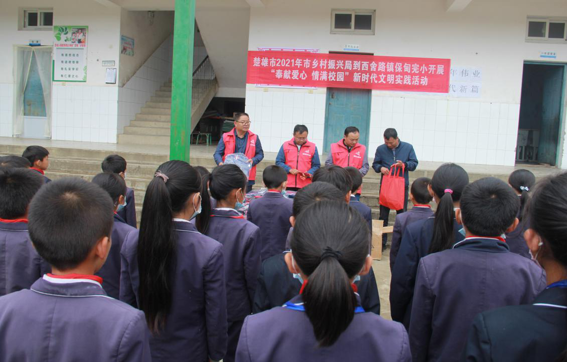 国庆节前夕,楚雄市乡村振兴局组织干部职工深入扶贫联系点西舍路镇保甸民族完小开展“奉献爱心 情满校园”、进村入户开展“嘘寒问暖送关怀 走访慰问献真情”新时代文明实践活动,送去党委和政府的关怀温暖。