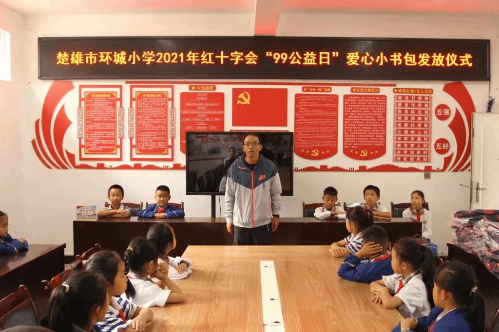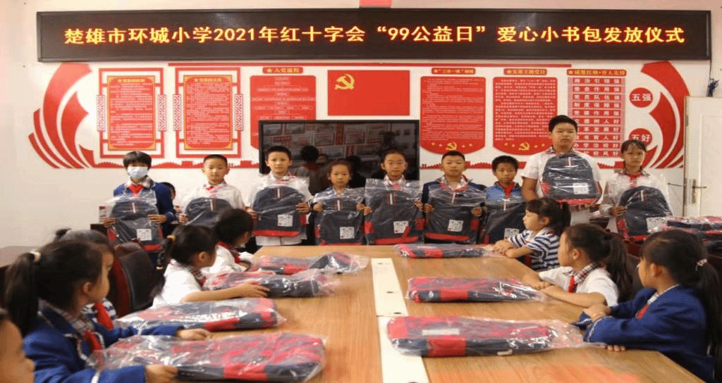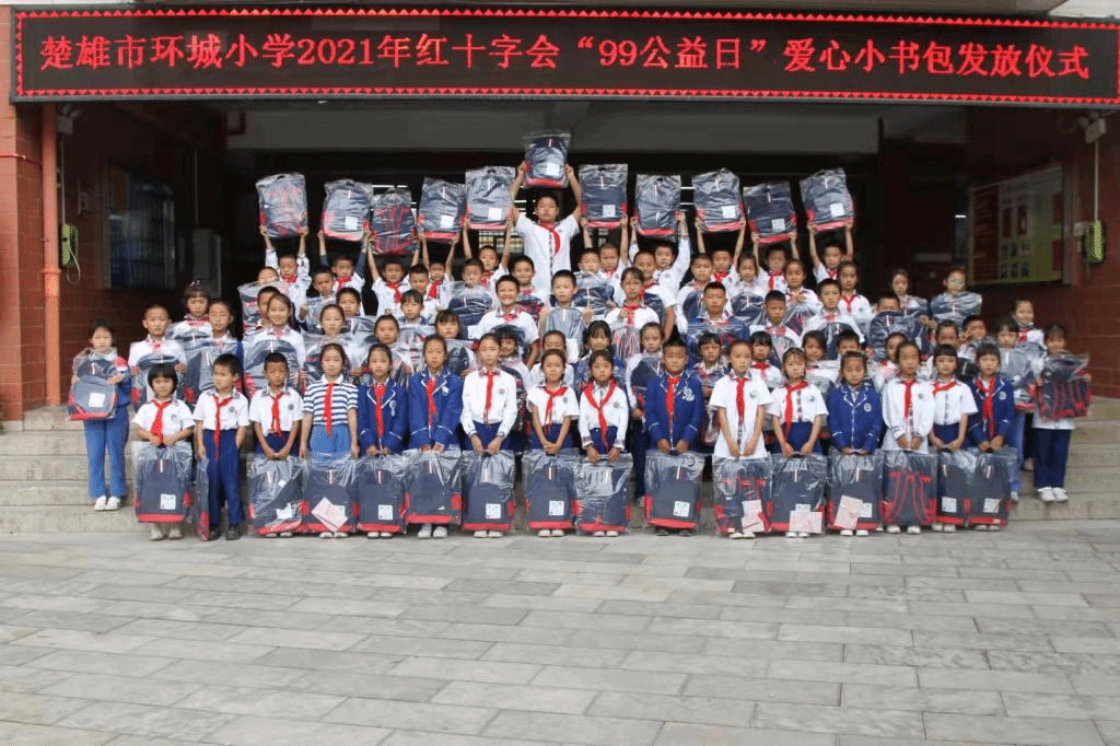 赠人玫瑰,手有余香,奉献爱心,收获希望,2021年10月9日上午,楚雄市环城小学家庭生活困难的孩子收到了一份神秘的礼物,它是来自楚雄市红十字会捐赠的小书包。
