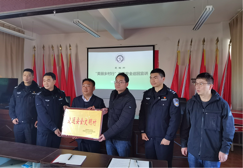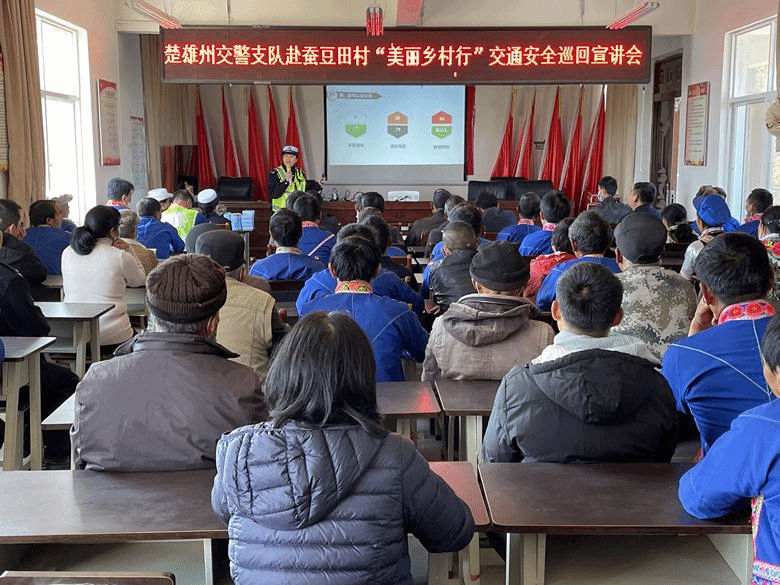 12月8日,楚雄州交警支队政治部副主任杨夏一行到楚雄市大过口乡蚕豆田村举行楚雄州“交通安全文明村”授牌仪式。