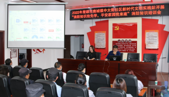 近日,楚雄市鹿城镇中大街社区新时代文明实践站开展“消防知识抢先学,平安家园我来建”消防知识培训,会议邀请了市消防大队专业人员到会指导。