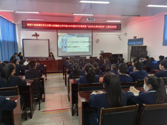 为增强广大学生们的法制观念,让每一个学生做到知法、学法、懂法、用法,学会用法律来保护自己,维护自己的合法权利。鹿城镇社区于5月16日下午联合西城派出所到金鹿中学举办“法制安全进校园”宣讲活动。