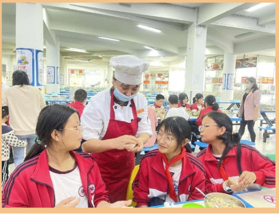 为丰富和拓展劳动技术课的形式,增强学生劳动体验感和动手能力,让孩子们在文化学科课堂之外寻求多元化、多维度、多方面的发展,实现“五育并举”的教育目标。2022年5月21日下午,学校后勤处主任谭千平老师、副主任陈翠菊老师以及初一年级副主任黄楚秋老师,共同带领初一年级周末留校学生在学校第一餐饮中心开展了一堂别开生面的劳动技术实践课。