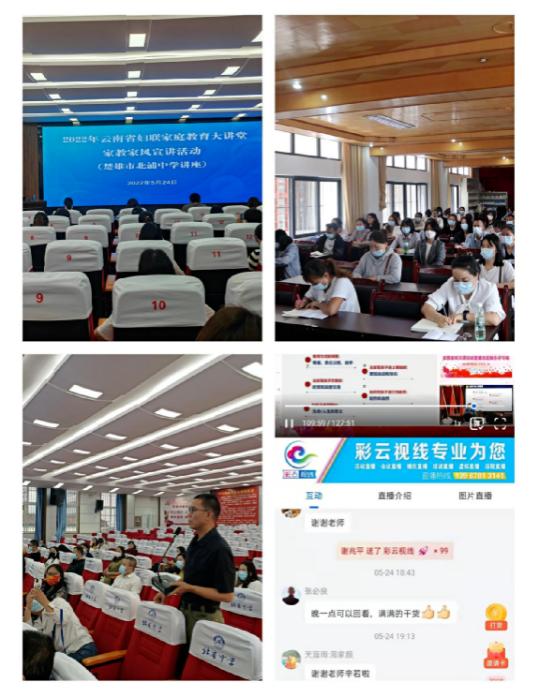 五是精心组织家庭教育宣讲活动。5月24日,邀请云南省婚姻家庭咨询师协会秘书长、云南省家庭教育研究会理事、云南省妇女联合会执委、国家一级婚姻家庭咨询师杨燕华老师在北城小学、北浦中学开展了2场家庭教育大讲堂暨家教家风宣讲活动。讲座采取线上线下的方式进行,98名家长现场参与、线上6396名家长通过直播平台进行收看学习。杨老师用生动语言和亲身经历的案例,向大家普及科学家庭教育知识,为广大家长解开了家庭教育中的困惑,进一步提升家长科学育子能力,为少年儿童健康成长营造全社会重视支持家庭教育的良好氛围。