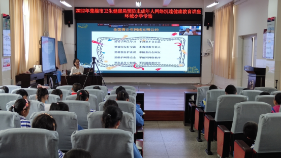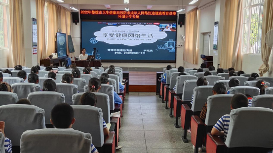 2022年6月17日、22日,楚雄市卫生健康局深入楚雄市环城小学、楚雄市北浦小学举办2场预防未成年人沉迷网络健康教育讲座,参与师生1692人。讲座引导未成年学生文明上网、绿色上网、合理用网、积极防止网络沉迷和伤害,使同学们的网络素养得到提升。