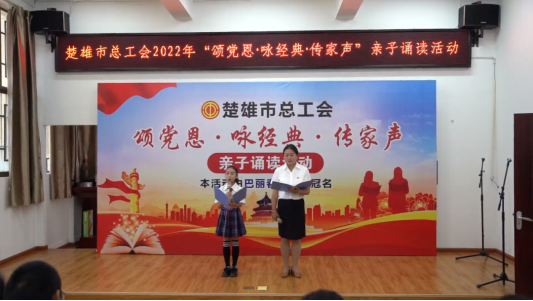 为传承弘扬中华优秀传统文化,传递良好家庭家教家风,引导青少年听党话、感党恩、跟党走,营造“好读书、读好书”的浓厚氛围,2月24日,楚雄市总工会举办“喜迎党的二十大 阅读颂辉煌——颂党恩·咏经典·传家声”亲子诵读比赛。12组家庭给我们带来了以古代蒙学经典、生态文明、绿色环保等为主题的精彩诵读。