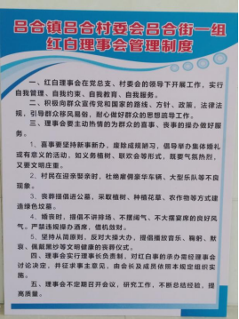 健全制度,夯实红白理事会基础。楚雄市文明办、民政局、妇联等相关部门,抽调了人员深入到各村进行指导,帮助各村进一步完善了红白理事会制度,实现123个村委会制度上墙。由村委会书记作为红白理事会的第一责任人,明确专职人员,每月开展一次宣传活动,每半年对工作情况进行分析汇总,并将此项工作列入了对乡镇、村的年终绩效考核指标,确保红白理事会正常开展工作。