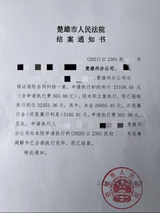近日楚雄市法院成功执结了一起保证保险合同纠纷案,迫于失信“曝光台”的压力被执行人小洁(化名)主动将剩余2万余元执行款交到执行局。