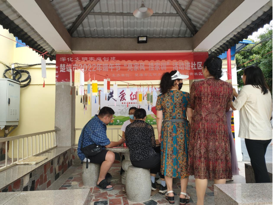 又是一年粽叶飘香时,楚雄市深入贯彻落实习近平总书记关于注重家庭家教家风建设重要论述的精神,大力弘扬中华传统家庭美德,以好家风促党风政风带社风民风,引导人民群众自觉培育和践行社会主义核心价值观,形成修身律已、崇德向善、礼让宽容的道德风尚。充分利用中国传统节日端午节的习俗,丰富群众的精神文化生活,培育传承良好的家风家教,楚雄市文明办走进社区开展亮家风挂家训的活动,不断深化家庭文明建设。