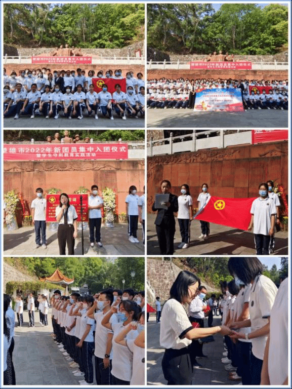 为贯彻落实习近平总书记党史学习教育大会重要讲话精神,楚雄市团委联合东兴中学团委在楚雄市西山爱国主义教育基地举行2022年新团员集中入团仪式暨学生守则教育活动 ,活动由东兴中学老师李霞主持,全体成员唱国歌,团市委书记冯晓瑞颁发团章和团徽,团干部宣读《团章》,新老团员代表发言,然后唱团歌。