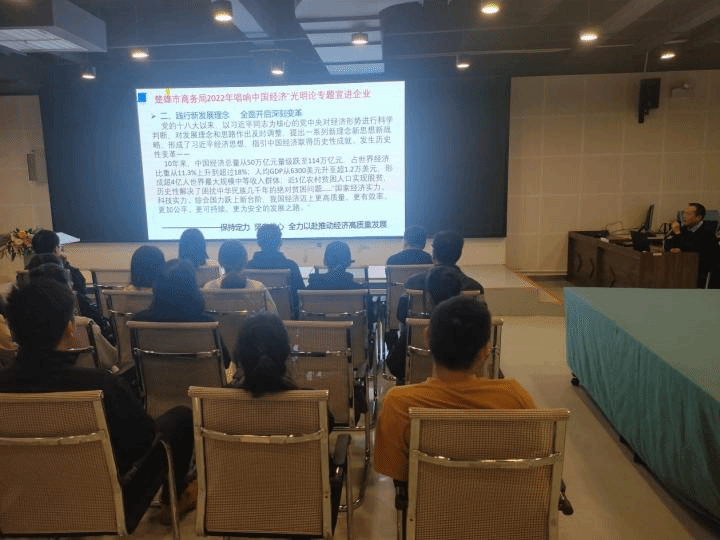 楚雄市商务局到楚雄唯上商务服务有限公司开展“唱响中国经济光明论”主题宣讲活动