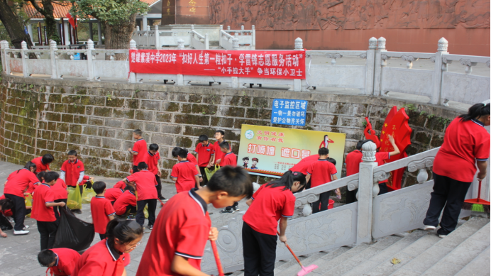 楚雄市紫溪中学2023年“扣好人生第一粒扣子·学雷锋志愿服务——小手拉大手,争当环保小卫士”文明实践志愿服务活动意在引导未成年人了解雷锋先进事迹,崇尚雷锋高尚品德,把握雷锋精神的时代内涵,不断发展壮大紫溪中学文明实践志愿服务队伍,让志愿服务在紫溪中学蔚然成风。