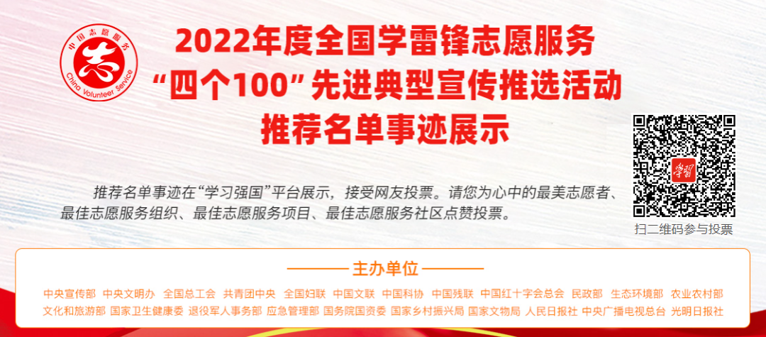 目前,志愿服务先进典型事迹在“学习强国”学习平台集中展示,接受网友投票。