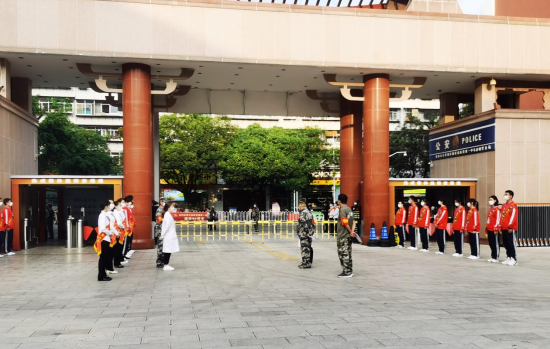 在每天学生上学、放学等重点时段,持续严格落实“护学岗”制度,安排文明交通志愿服务岗,引导学校门口家长、学生不聚集、不扎堆,保障师生安全有序出入校园。