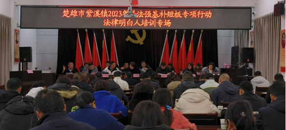 为深入推进法治紫溪建设,认真落实紫溪镇“八五”普法规划及紫溪镇 2023 年普法强基补短板专项行动要求,进一步提升农村“法律明白人”法治化水平,充分发挥“法律明白人”在法治建设中的职能作用,扎实推进 2023 年普法强基补短板专项行动深入开展,紫溪镇于 2023 年 3 月 22日借“万名党员进党校”东风举办了农村“法律明白人”培训班,紫溪镇辖区村(社区)培养的44名“法律明白人”、各支部党员代表及各站所长共133人参加了培训,会议由镇人民政府镇长刘应文主持。朱刚副镇长全面安排了 2023 年普法强基补短板专项行动工作和八五普法工作。