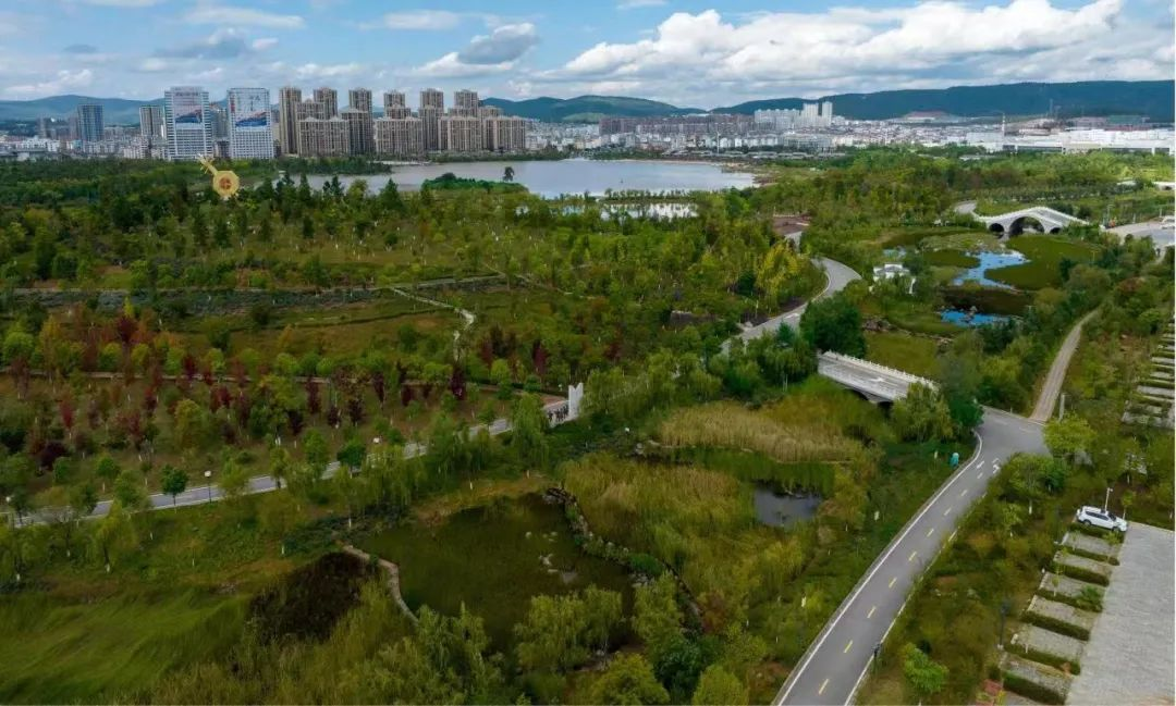 楚雄市城区公园体系规划突出楚雄彝族文化城市空间特色,充分发挥“山-河-湖-林”的蓝绿空间资源优势,形成“以水带园、园湖共建、多元发展、共建共享”的公园城市空间格局。