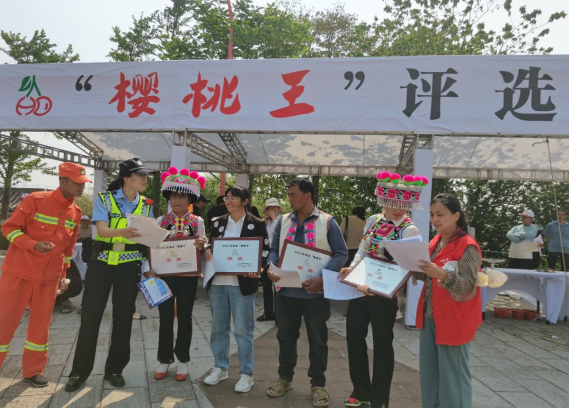 紫溪镇普法强基补短板专项行动办借力“樱桃节”有利时机,组织司法所、派出所、综治办、市场管理所、经发办在狠抓各项安保措施落实落细,全力确保安全的基础上,采取“安保+服务+普法”三推进的方式,将“法”与节日展示巧妙地融合在一起。
