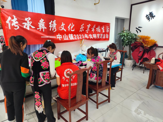 为弘扬民族传统文化,不断提高彝绣技能,进一步加快中山镇镇民族刺绣产业发展,实现更多的居家妇女在家门口就业,7月18日下午,中山镇文明实践所联合中山镇彝绣车间开展“传承彝绣文化·乐享幸福生活”彝绣交流促进活动,多名优秀绣娘代表和志愿者参加。